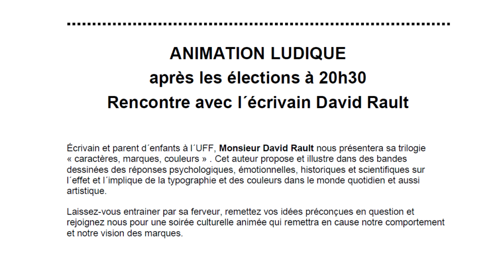 – Invitation adressée à tous les membres et non-membres de l’U.F.F.. N’hésitez pas à venir accompagnés par les amis de passage, de longue date, francophones ou autres !